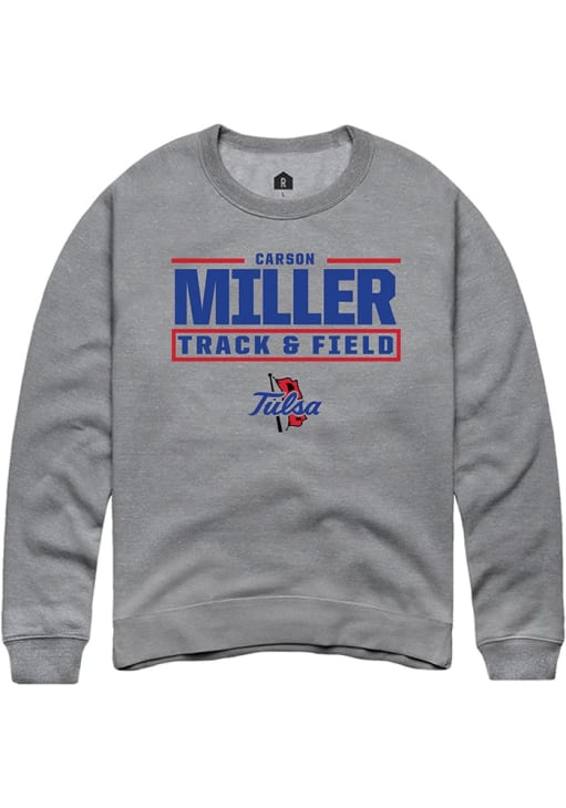 Carson Miller Rally Mens Graphite Tulsa Golden Hurricane NIL Stacked Box Crew Sweatshirt