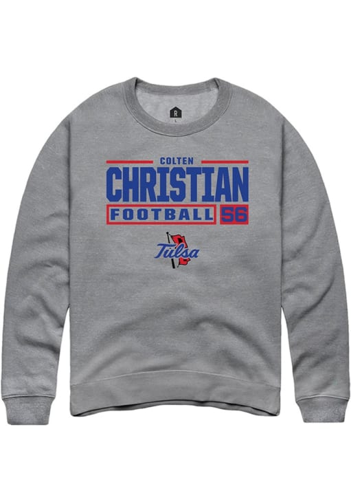Gear up for the ultimate game day experience with this remarkable Tulsa Golden HurricaneMens Graphite Football NIL Stacked Box Crew Sweatshirt! Designed with the true fan in mind, this Golden Hurricanes Long Sleeve Crew Sweatshirt features a custom graphic with player's name and number. Stay warm and comfortable with this Mens Tulsa Golden Hurricanes Crew Sweatshirt.