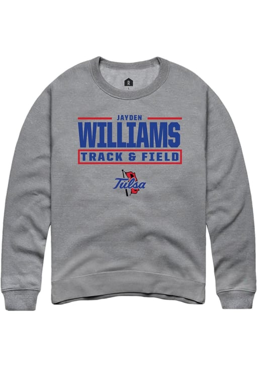 Gear up for the ultimate game day experience with this remarkable Tulsa Golden HurricaneMens Graphite NIL Stacked Box Crew Sweatshirt! Designed with the true fan in mind, this Golden Hurricanes Long Sleeve Crew Sweatshirt features a custom graphic with player's name and number. Stay warm and comfortable with this Mens Tulsa Golden Hurricanes Crew Sweatshirt.