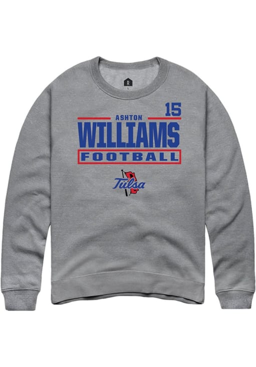 Gear up for the ultimate game day experience with this remarkable Tulsa Golden HurricaneMens Graphite Football NIL Stacked Box Crew Sweatshirt! Designed with the true fan in mind, this Golden Hurricanes Long Sleeve Crew Sweatshirt features a custom graphic with player's name and number. Stay warm and comfortable with this Mens Tulsa Golden Hurricanes Crew Sweatshirt.