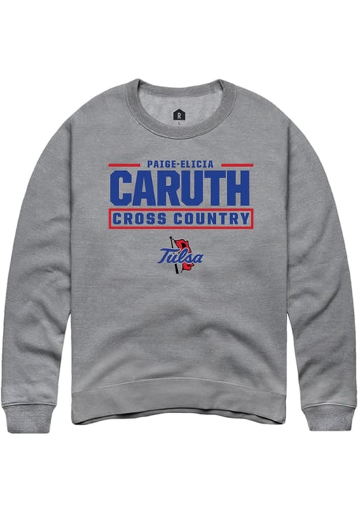 Paige-Elicia Caruth Rally Mens Graphite Tulsa Golden Hurricane NIL Stacked Box Crew Sweatshirt