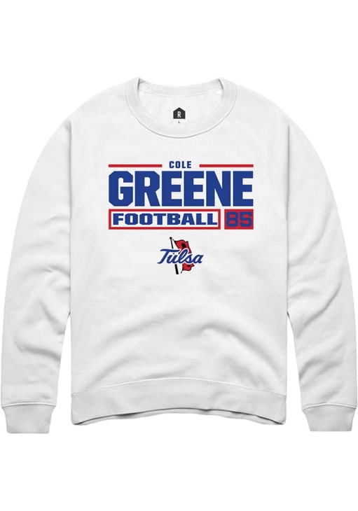 Cole Greene Rally Mens White Tulsa Golden Hurricane Football NIL Stacked Box Crew Sweatshirt