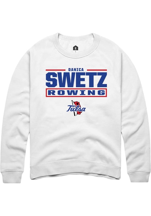 Danica Swetz Rally Mens White Tulsa Golden Hurricane NIL Stacked Box Crew Sweatshirt