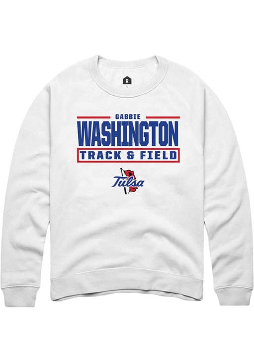Gabbie Washington Rally Mens White Tulsa Golden Hurricane NIL Stacked Box Crew Sweatshirt