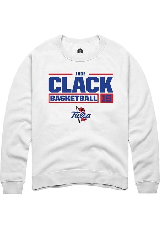 Jade Clack Rally Mens White Tulsa Golden Hurricane NIL Stacked Box Crew Sweatshirt