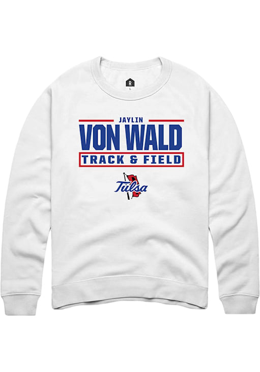 Jaylin Adams/Vonwald Rally Mens White Tulsa Golden Hurricane NIL Stacked Box Crew Sweatshirt