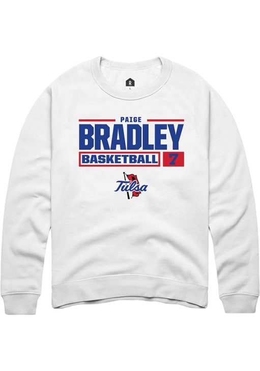 Paige Bradley Rally Mens White Tulsa Golden Hurricane NIL Stacked Box Crew Sweatshirt