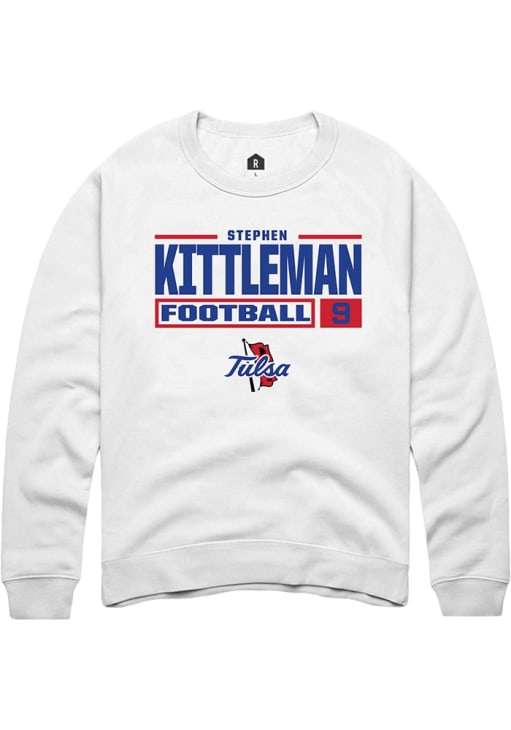 Stephen Kittleman Rally Mens White Tulsa Golden Hurricane Football NIL Stacked Box Crew Sweatshirt