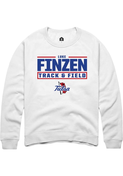 Luke Finzen Rally Mens White Tulsa Golden Hurricane NIL Stacked Box Crew Sweatshirt