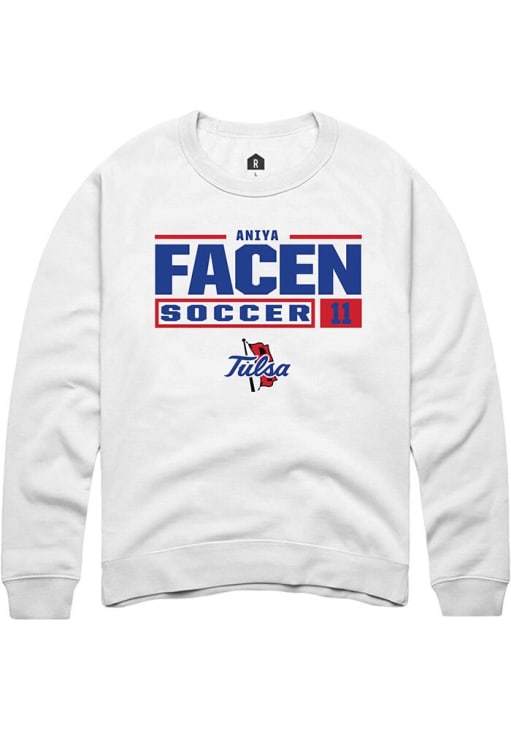Aniya Facen Rally Mens White Tulsa Golden Hurricane NIL Stacked Box Crew Sweatshirt