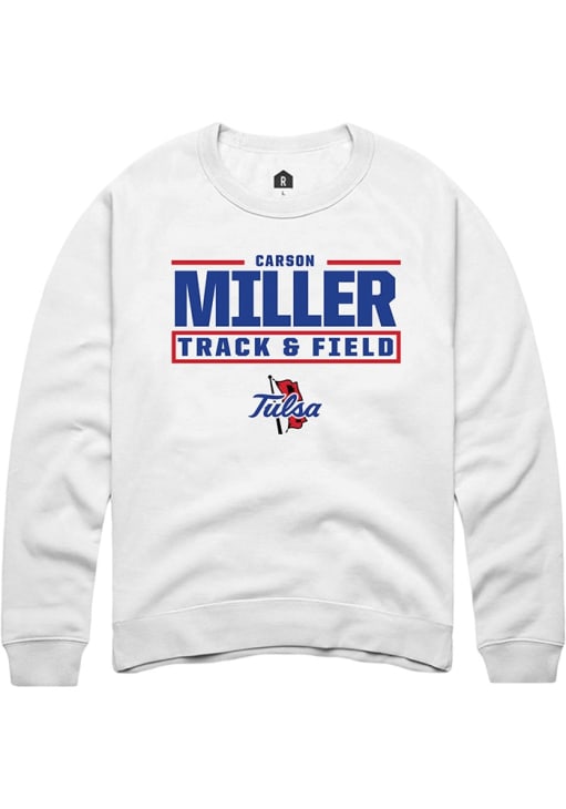Carson Miller Rally Mens White Tulsa Golden Hurricane NIL Stacked Box Crew Sweatshirt