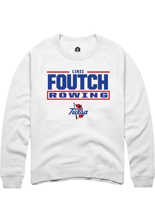 Linzi Foutch Rally Mens White Tulsa Golden Hurricane NIL Stacked Box Crew Sweatshirt