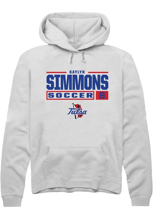 Kaylyn Simmons Rally Mens White Tulsa Golden Hurricane NIL Stacked Box Hooded Sweatshirt