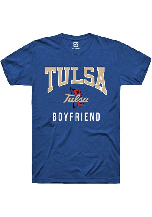 Display your team spirit with this remarkable Tulsa Golden Hurricane Summit Sportswear Blue Boyfriend Short Sleeve T Shirt! The Tulsa Short Sleeve Tee showcases a digitally printed graphic that truly sets it apart. Stand out from the crowd and proudly declare your allegiance to the Golden Hurricanes with this exceptional Blue Tulsa T Shirt. Go Hurrianes!