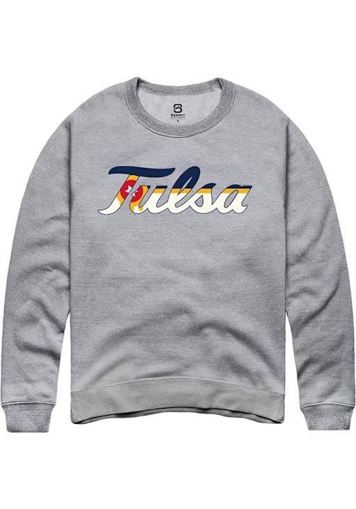 Gear up for the ultimate game day experience with this remarkable Tulsa Golden HurricaneMens Grey City Flag Crew Sweatshirt! Designed with the true fan in mind, this Golden Hurricanes Long Sleeve Crew Sweatshirt features a digitally printed graphic. Stay warm and comfortable with this Mens Tulsa Golden Hurricanes Crew Sweatshirt.