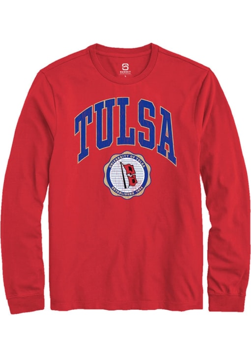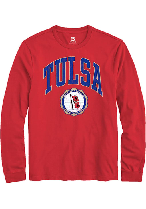Show your Tulsa Golden Hurricane spirit in this Tulsa Red T Shirt! This Tulsa Arch Seal Long Sleeve T Shirt makes a great layer for cooler nights cheering on the Golden Hurricanes. Featuring a digitally printed graphic, this Tulsa Golden Hurricane Long Sleeve Tee is an essential addition for every fan. Go Hurrianes!