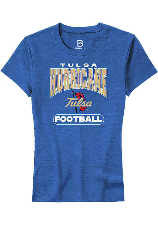 Display your team spirit with this remarkable Tulsa Golden Hurricane Blue Football Short Sleeve T-Shirt! The Tulsa Short Sleeve Tee showcases a digitally printed graphic that truly sets it apart. Stand out from the crowd and proudly declare your allegiance to the Golden Hurricanes with this exceptional Blue Tulsa T-Shirt. Go Hurrianes!