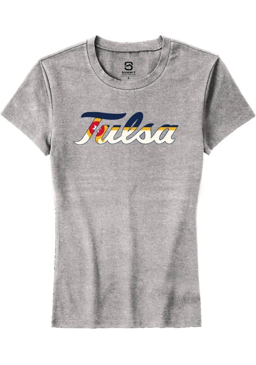 Display your team spirit with this remarkable Tulsa Golden Hurricane Grey City Flag Short Sleeve T-Shirt! The Tulsa Short Sleeve Tee showcases a digitally printed graphic that truly sets it apart. Stand out from the crowd and proudly declare your allegiance to the Golden Hurricanes with this exceptional Grey Tulsa T-Shirt. Go Hurrianes!
