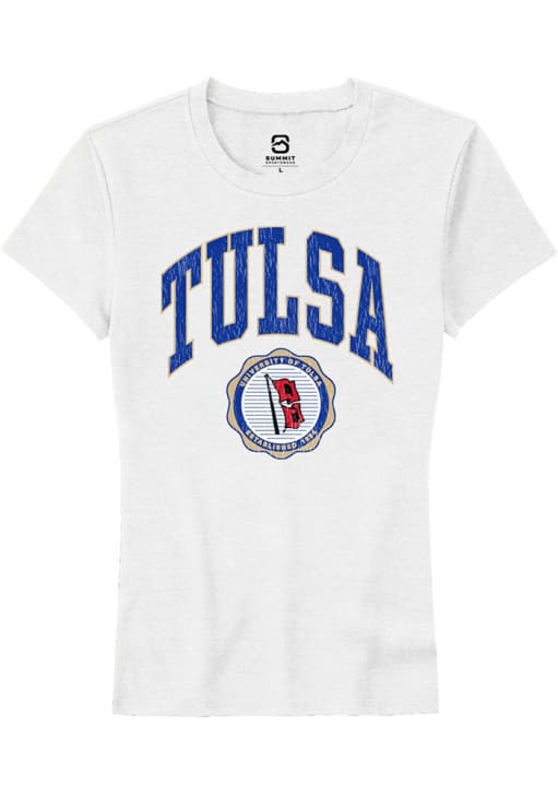 Display your team spirit with this remarkable Tulsa Golden Hurricane White Arch Seal Short Sleeve T-Shirt! The Tulsa Short Sleeve Tee showcases a digitally printed graphic that truly sets it apart. Stand out from the crowd and proudly declare your allegiance to the Golden Hurricanes with this exceptional White Tulsa T-Shirt. Go Hurrianes!