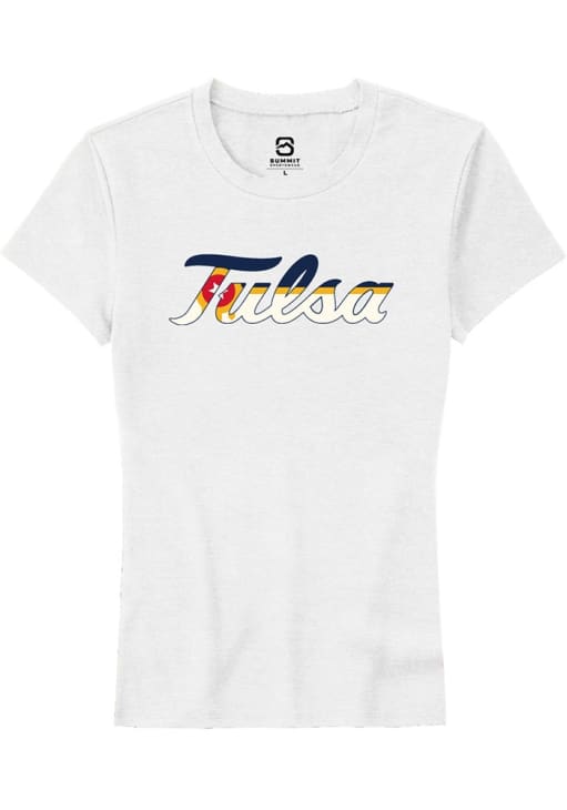 Display your team spirit with this remarkable Tulsa Golden Hurricane White City Flag Short Sleeve T-Shirt! The Tulsa Short Sleeve Tee showcases a digitally printed graphic that truly sets it apart. Stand out from the crowd and proudly declare your allegiance to the Golden Hurricanes with this exceptional White Tulsa T-Shirt. Go Hurrianes!