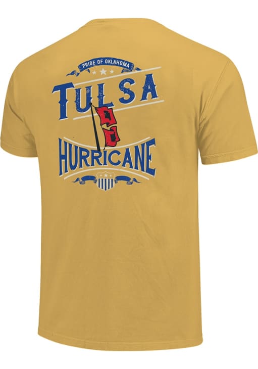 Display your team spirit with this remarkable Tulsa Golden Hurricane Gold Shield Short Sleeve T Shirt! The Tulsa Short Sleeve Tee showcases a screen print of team graphic on back with logo on left chest that truly sets it apart. Stand out from the crowd and proudly declare your allegiance to the Golden Hurricanes with this exceptional Gold Tulsa T Shirt. Go Hurrianes!