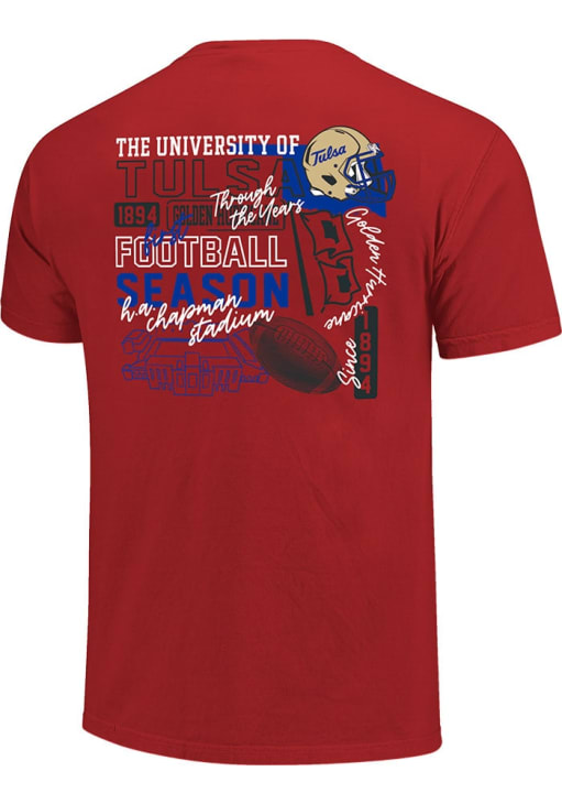 Display your team spirit with this remarkable Tulsa Golden Hurricane Crimson Through the Years Short Sleeve T-Shirt! The Tulsa Short Sleeve Tee showcases a screen print team graphic that truly sets it apart. Stand out from the crowd and proudly declare your allegiance to the Golden Hurricanes with this exceptional Crimson Tulsa T-Shirt. Go Hurrianes!