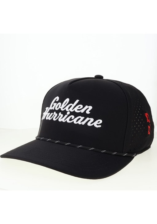 This Black Golden Hurricanes Adjustable Hat features a front embroidered team script with team logo side patch.