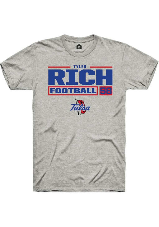 Tyler Rich Ash Tulsa Golden Hurricane Football NIL Stacked Box Short Sleeve T Shirt