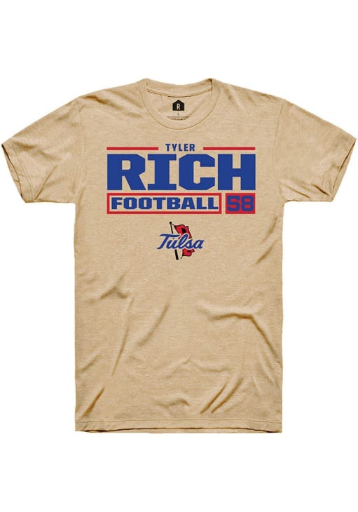 Tyler Rich Tan Tulsa Golden Hurricane Football NIL Stacked Box Short Sleeve T Shirt