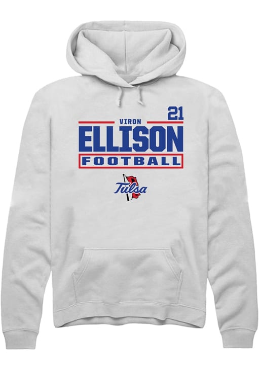 Viron Ellison Rally Mens White Tulsa Golden Hurricane Football NIL Stacked Box Hooded Sweatshirt