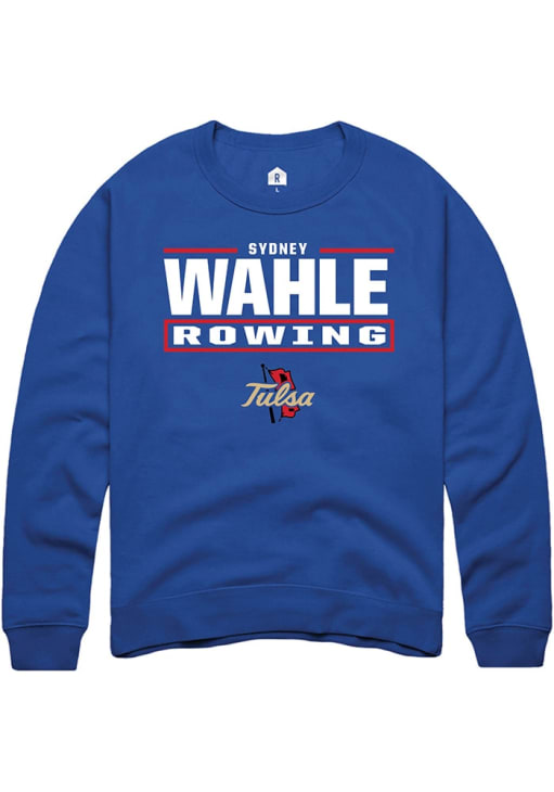 Sydney Wahle Rally Mens Blue Tulsa Golden Hurricane NIL Stacked Box Crew Sweatshirt