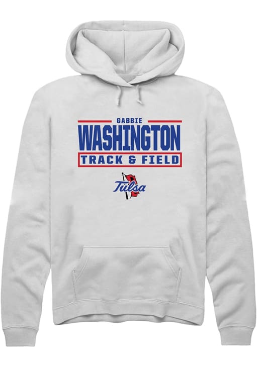 Gabbie Washington Rally Mens White Tulsa Golden Hurricane NIL Stacked Box Hooded Sweatshirt