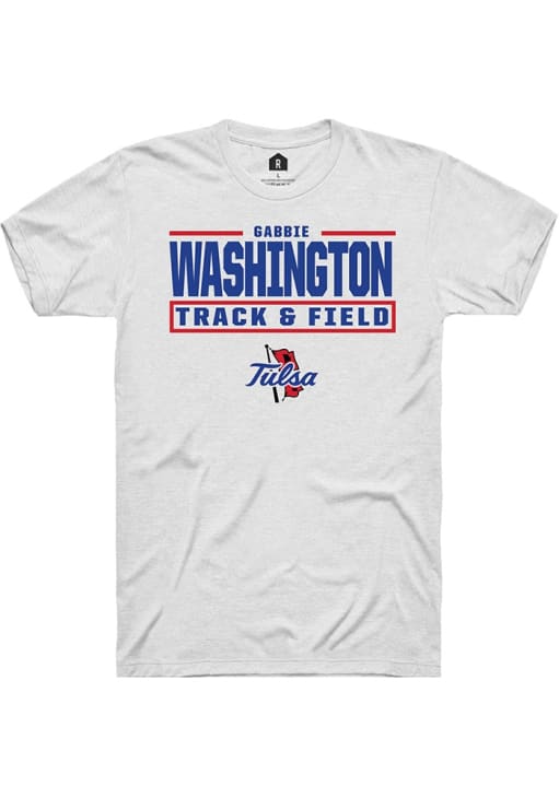 Gabbie Washington White Tulsa Golden Hurricane NIL Stacked Box Short Sleeve T Shirt