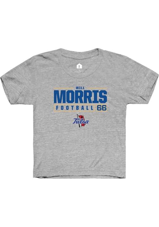 Will Morris Rally Youth Grey Tulsa Golden Hurricane NIL Stacked Box Short Sleeve T-Shirt
