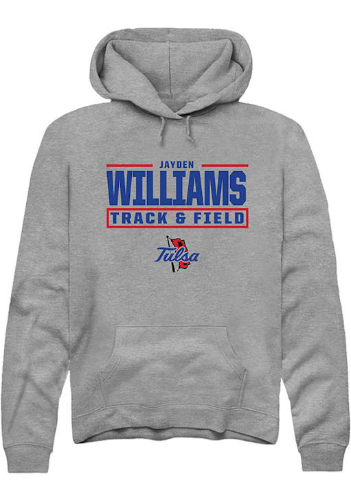Jayden Williams Rally Mens Graphite Tulsa Golden Hurricane NIL Stacked Box Hooded Sweatshirt
