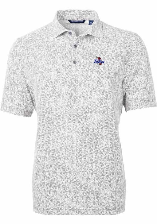 Enhance your professional style with this striking Mens Grey Short Sleeve Polo Shirt! Showcase your team pride among colleagues with this exceptional Tulsa Grey Virtue Eco Pique Botanical Short Sleeve Polo. Stand out and make a statement in this Tulsa Golden Hurricane Short Sleeve Polo, featuring a botanical pattern that adds a touch of distinction to your look.