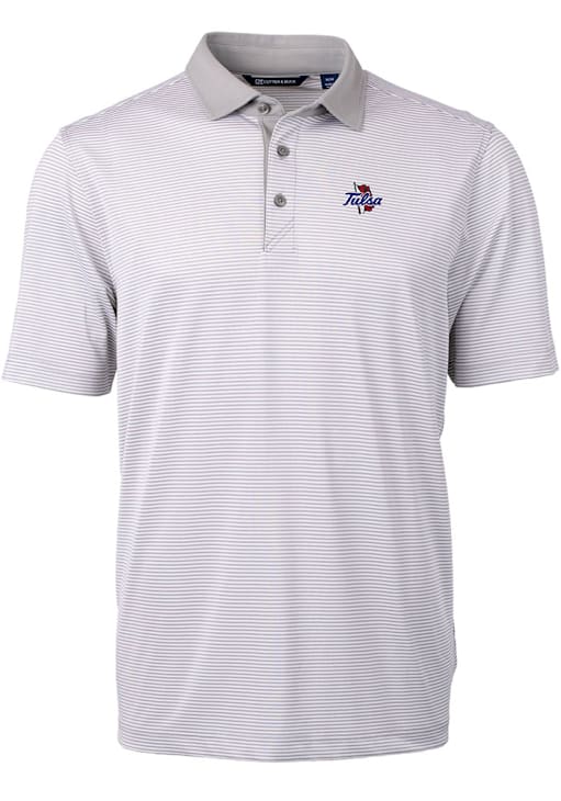 Enhance your professional style with this striking Mens Grey Short Sleeve Polo Shirt! Showcase your team pride among colleagues with this exceptional Tulsa Grey Virtue Eco Pique Micro Stripe Short Sleeve Polo. Stand out and make a statement in this Tulsa Golden Hurricane Short Sleeve Polo, featuring a micro stripe pattern that adds a touch of distinction to your look.