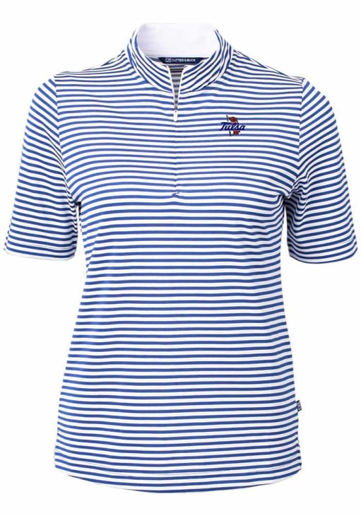 Womens Tulsa Golden Hurricane Blue Cutter and Buck Virtue Eco Pique Stripe Short Sleeve Polo Shirt
