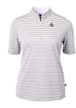Womens Tulsa Golden Hurricane Grey Cutter and Buck Virtue Eco Pique Stripe Short Sleeve Polo Shirt