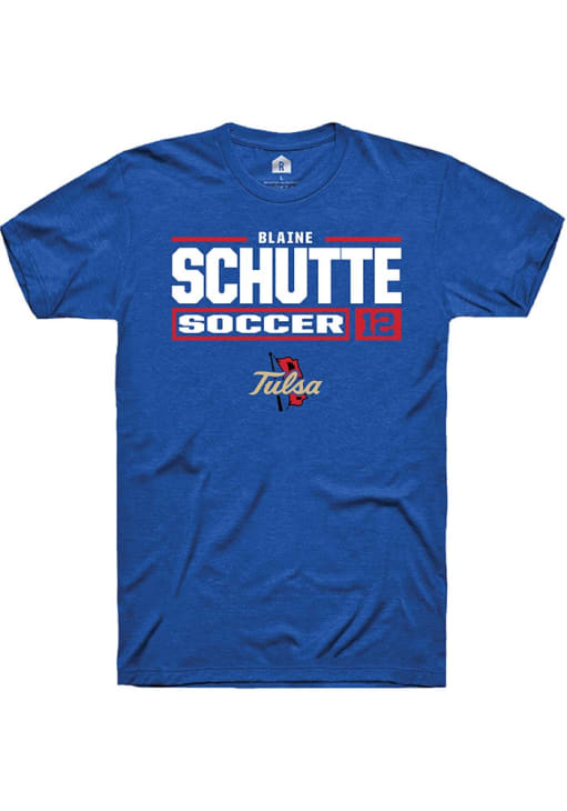 blaine schutte Blue Tulsa Golden Hurricane NIL Stacked Box Short Sleeve T Shirt