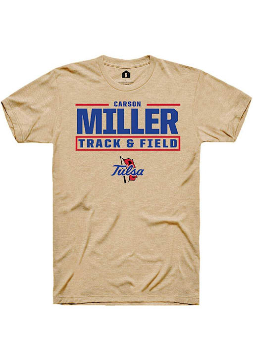 Carson Miller Tan Tulsa Golden Hurricane NIL Stacked Box Short Sleeve T Shirt