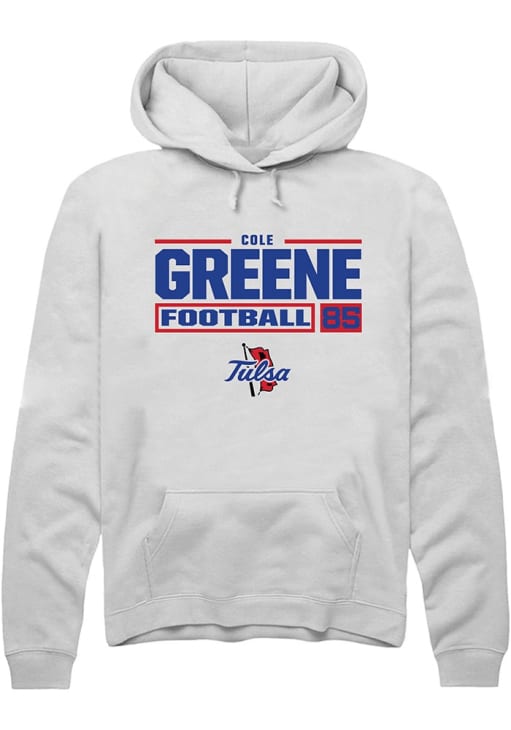 Cole Greene Rally Mens White Tulsa Golden Hurricane Football NIL Stacked Box Hooded Sweatshirt