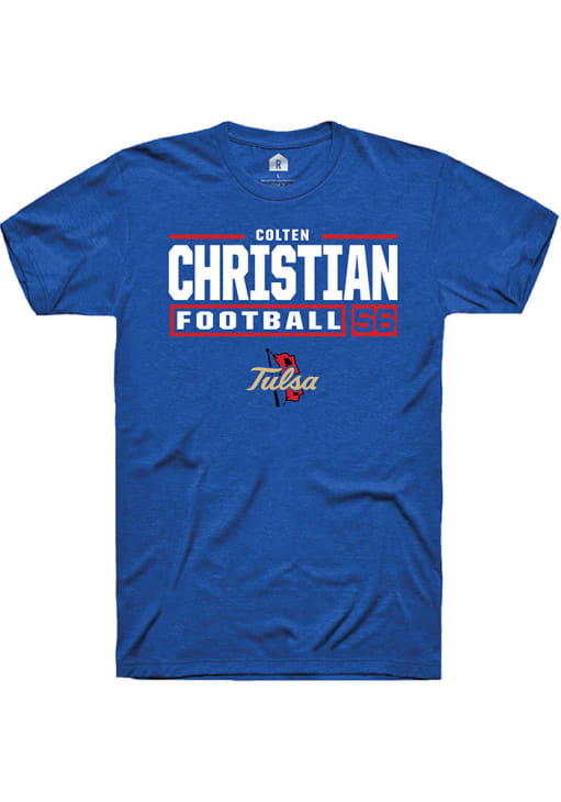 Colten Christian Blue Tulsa Golden Hurricane Football NIL Stacked Box Short Sleeve T Shirt