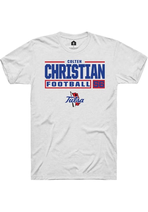 Colten Christian White Tulsa Golden Hurricane Football NIL Stacked Box Short Sleeve T Shirt