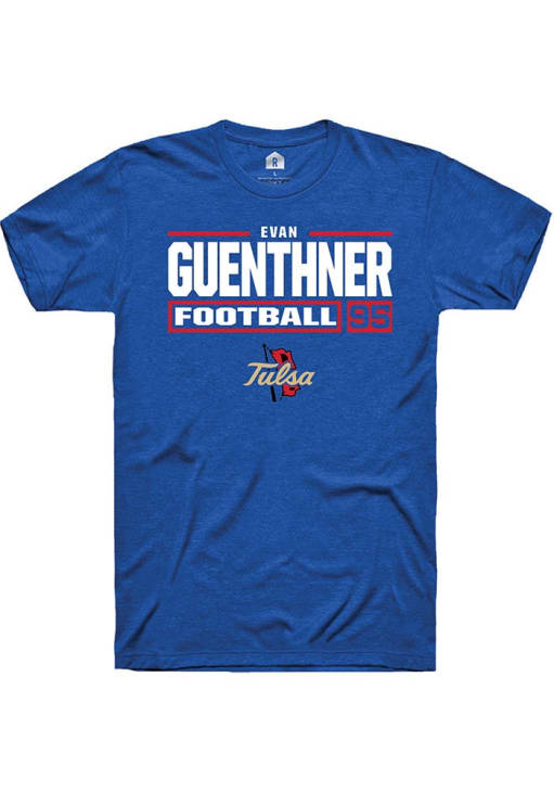 Evan Guenthner Blue Tulsa Golden Hurricane Football NIL Stacked Box Short Sleeve T Shirt