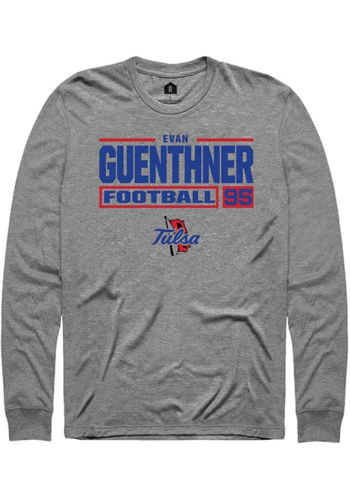 Evan Guenthner Rally Mens Graphite Tulsa Golden Hurricane Football NIL Stacked Box Tee