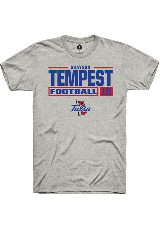 Display your team spirit with this remarkable Tulsa Golden Hurricane Rally Ash Football NIL Stacked Box Short Sleeve T Shirt! The Tulsa Short Sleeve Tee showcases a custom graphic with player's name and number that truly sets it apart. Stand out from the crowd and proudly declare your allegiance to the Golden Hurricanes with this exceptional Ash Tulsa T Shirt. Go Hurrianes!