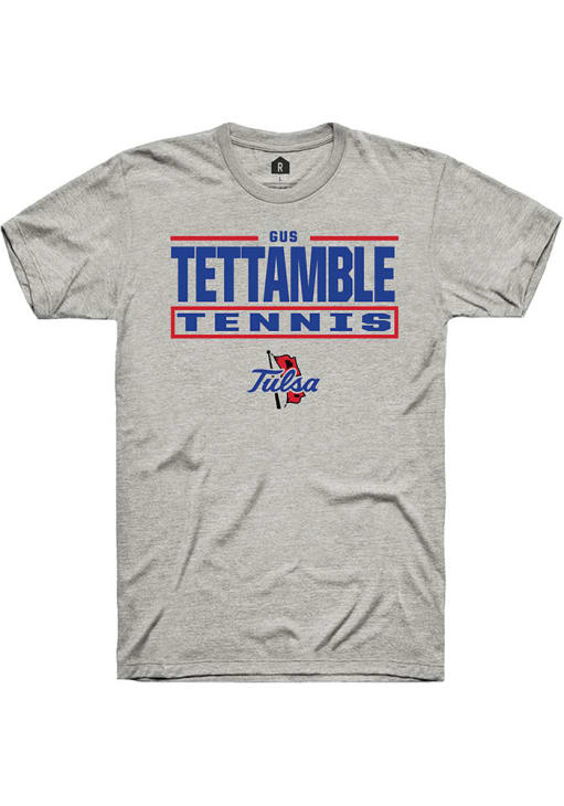 Gus Tettamble Ash Tulsa Golden Hurricane NIL Stacked Box Short Sleeve T Shirt