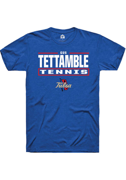 Gus Tettamble Blue Tulsa Golden Hurricane NIL Stacked Box Short Sleeve T Shirt