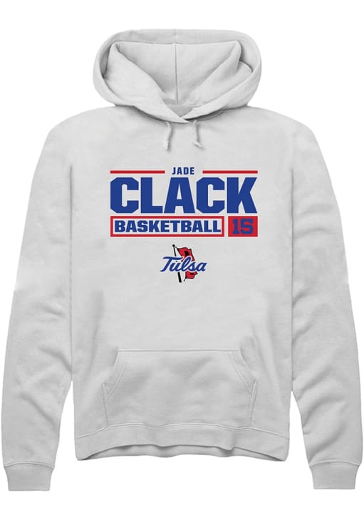 Jade Clack Rally Mens White Tulsa Golden Hurricane NIL Stacked Box Hooded Sweatshirt